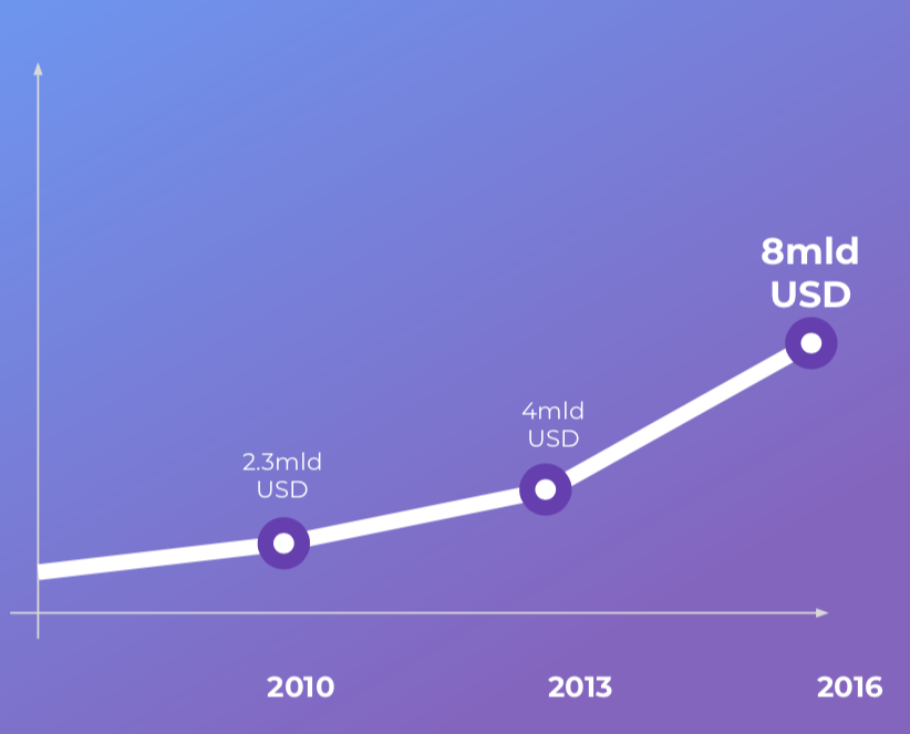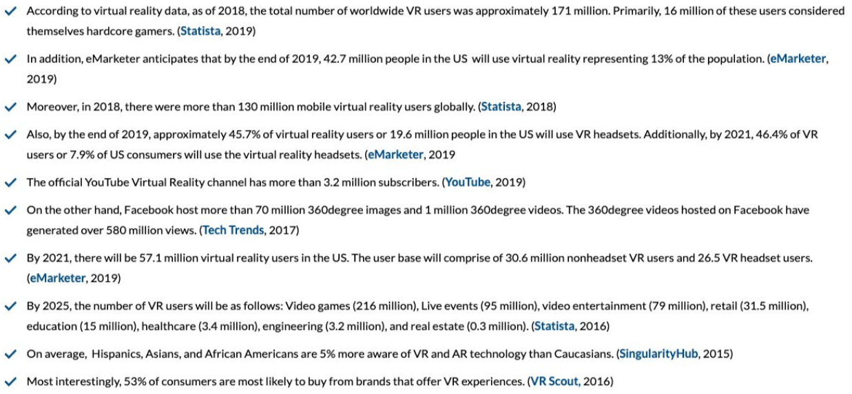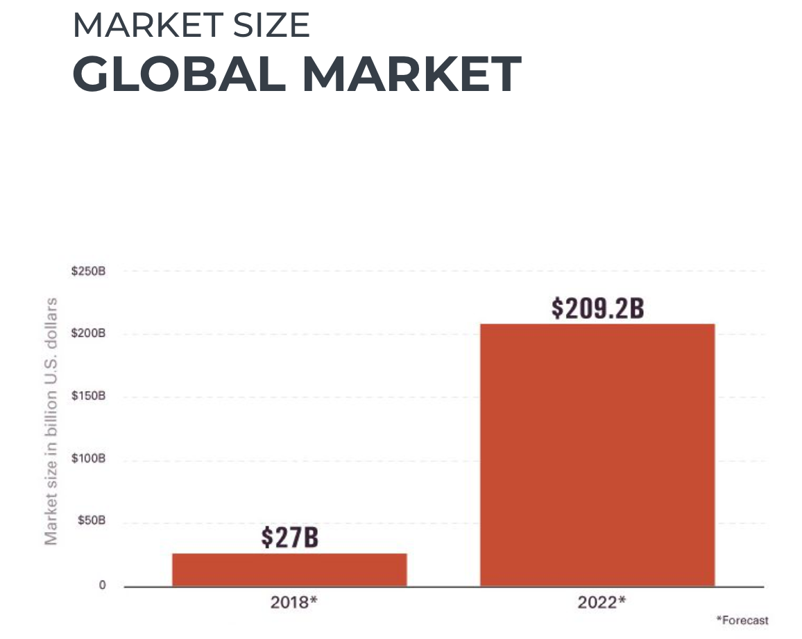 Díky cenově dostupnému hardwaru (i ty nejdražší headseaty se pohybují pod hranící 20.000,- CZK), masivní adopcí velkých technologických gigantů (Facebook, Samsung, Google, atd.) i podporou retailu (i u nás například Alza), se objem globálního trhu zvýší mezi roky 2018 a 2022 dokonce více než 8x!